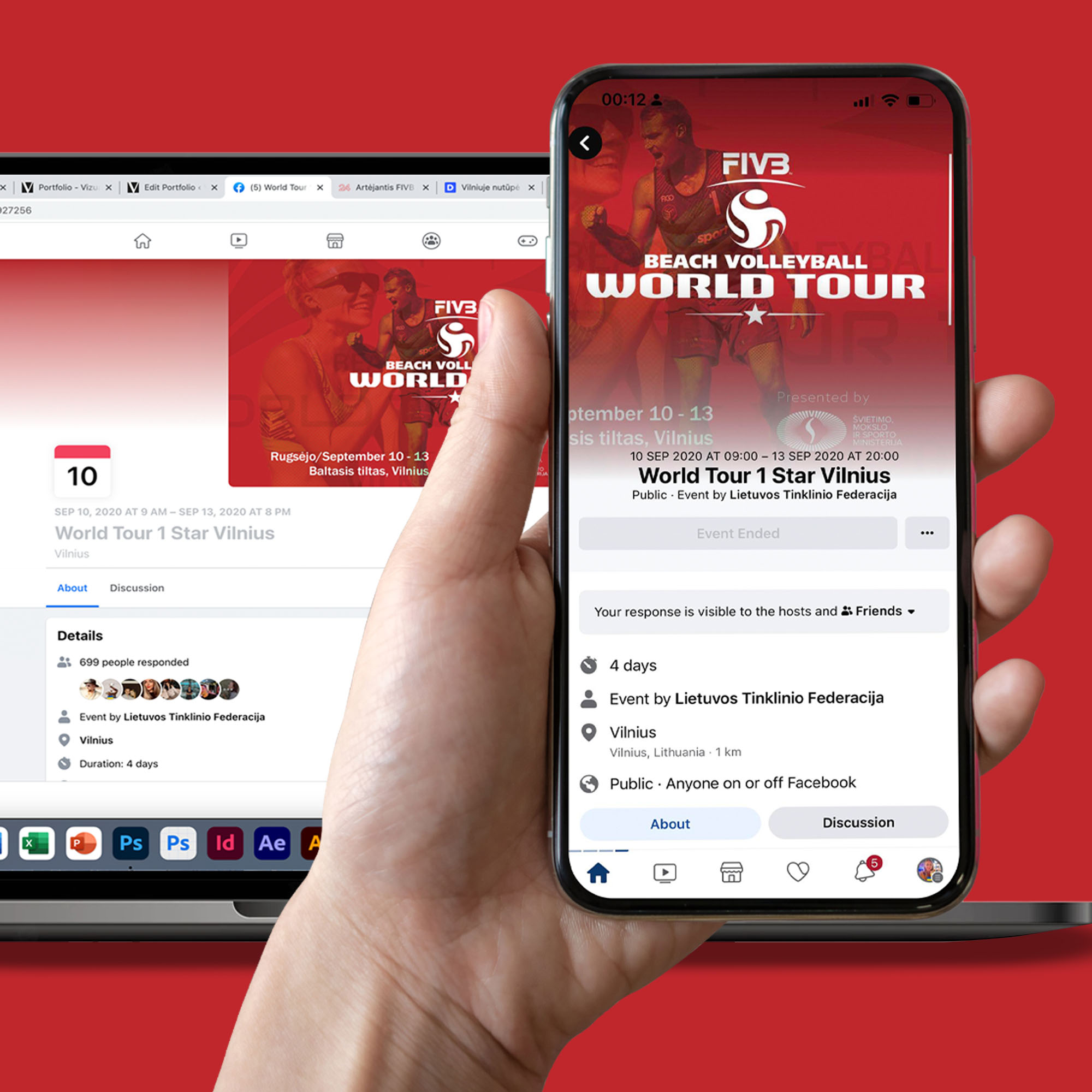 Pagal kliento pageidavimus (Lietuvos tinklinio federacija) buvo sukurtas Facebook kaveris tarptautiniam pliažo tinklinio čempionatui. Vėliau Facebook kaverį klientai naudojo Facebook renginio viršeliui, tačiau tai nėra pats geriausias sprendimas, nes nemažai svarbios informacijos nusikirpo mobiliojoje versijoje, prarastas matomumas. Visuomet siūlau klientams nepagailėti keleto eurų ant naujos dizaino kompozicijos skirtiengiems medijų kanalams.