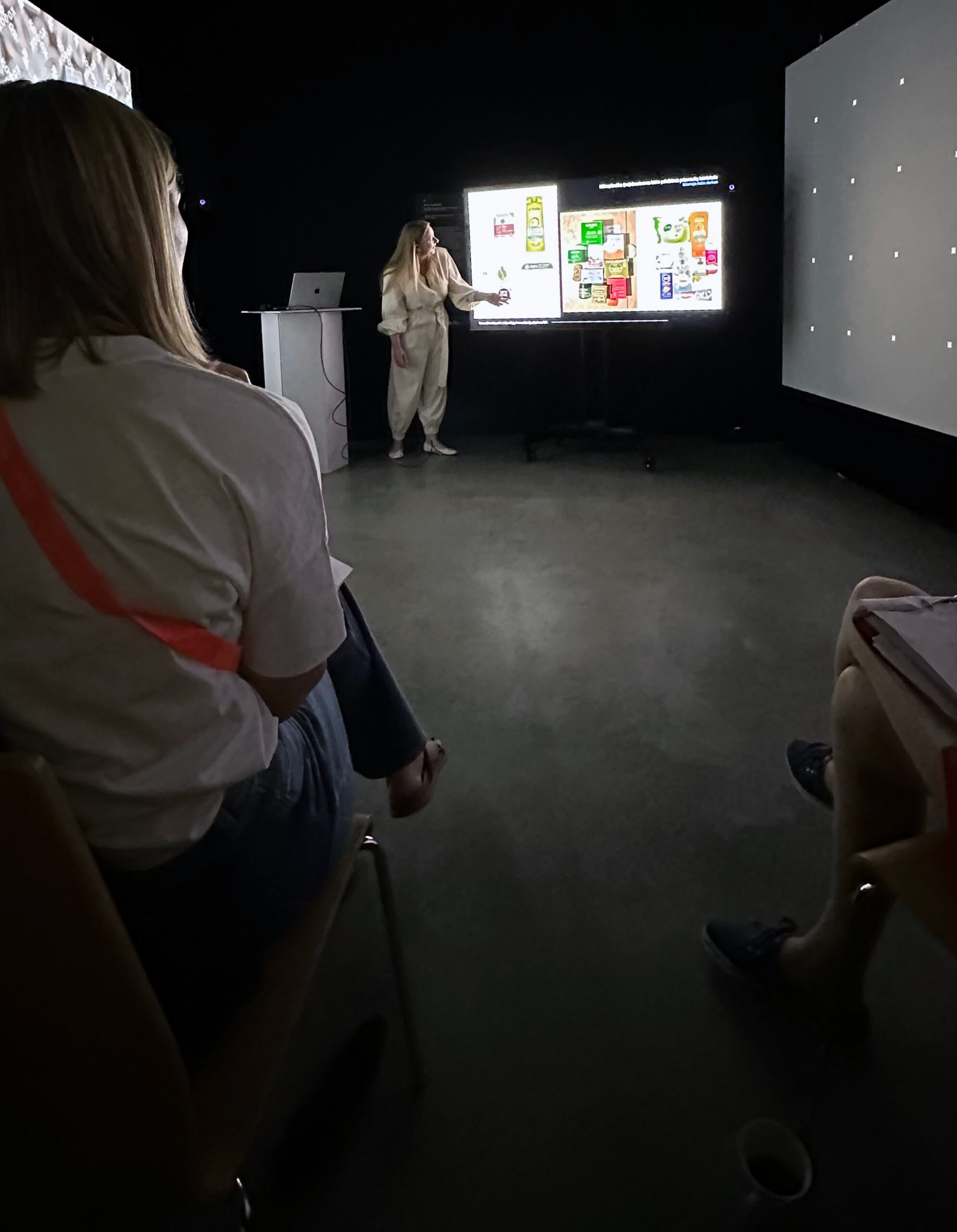 The images seen in the installation are directly related to microplastics in body care products, the problems caused by microplastics, their origin, and other uses of microplastics, such as Teflon pans or polyethylene for greenhouses, which are also used in body care products.