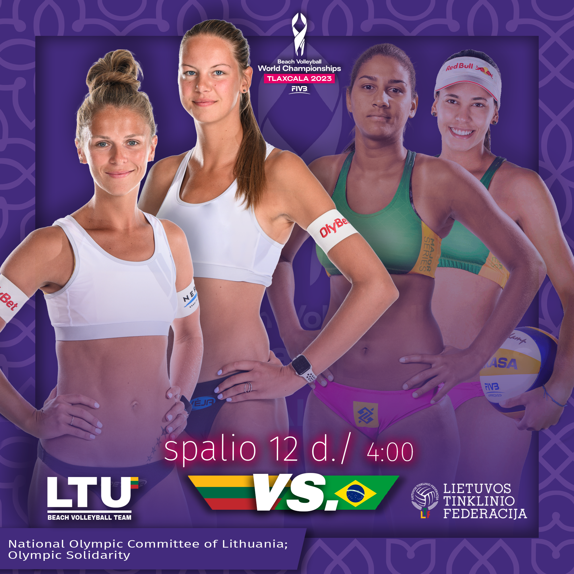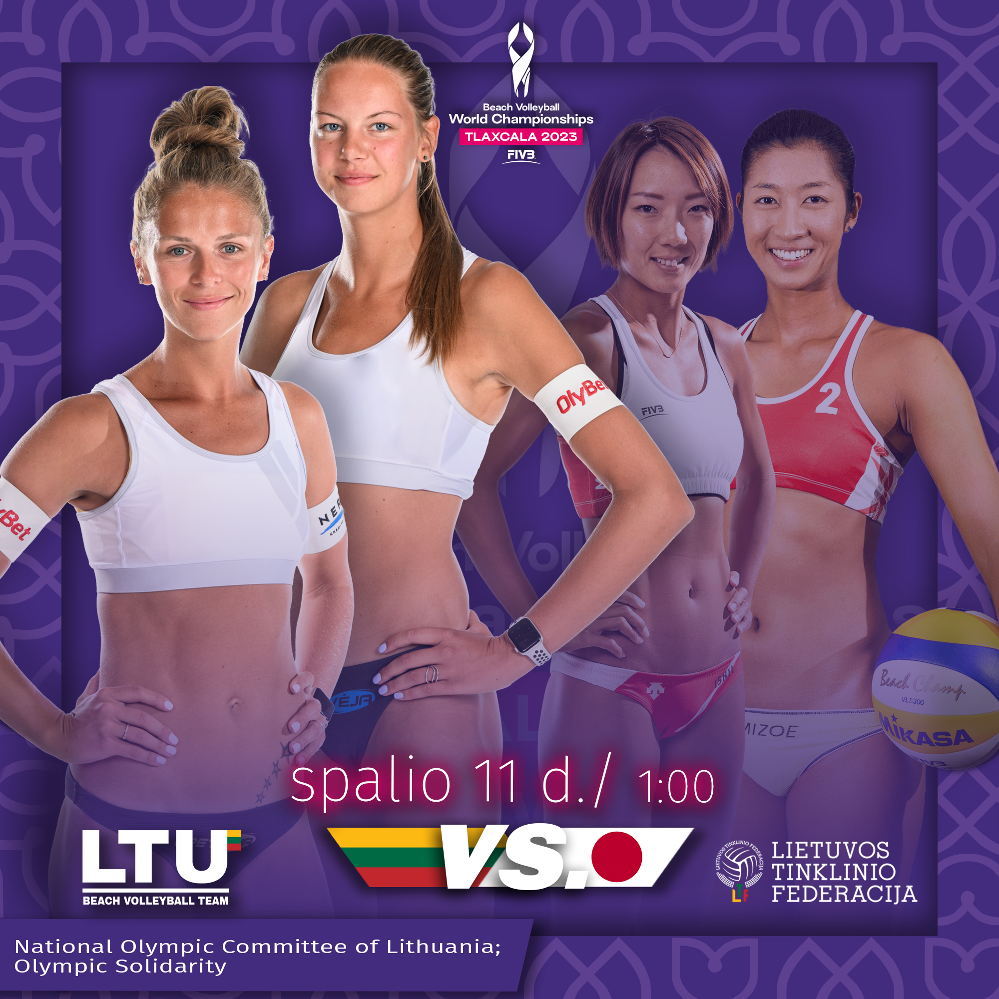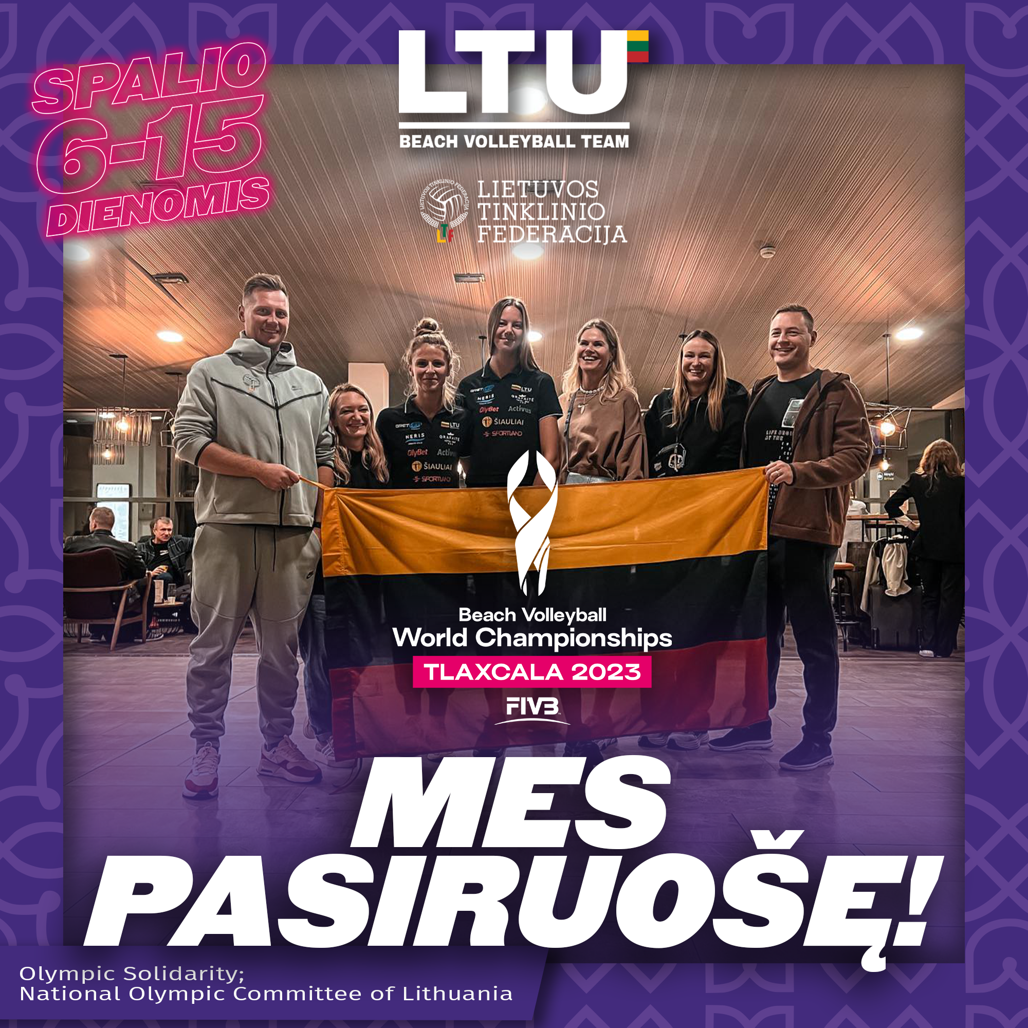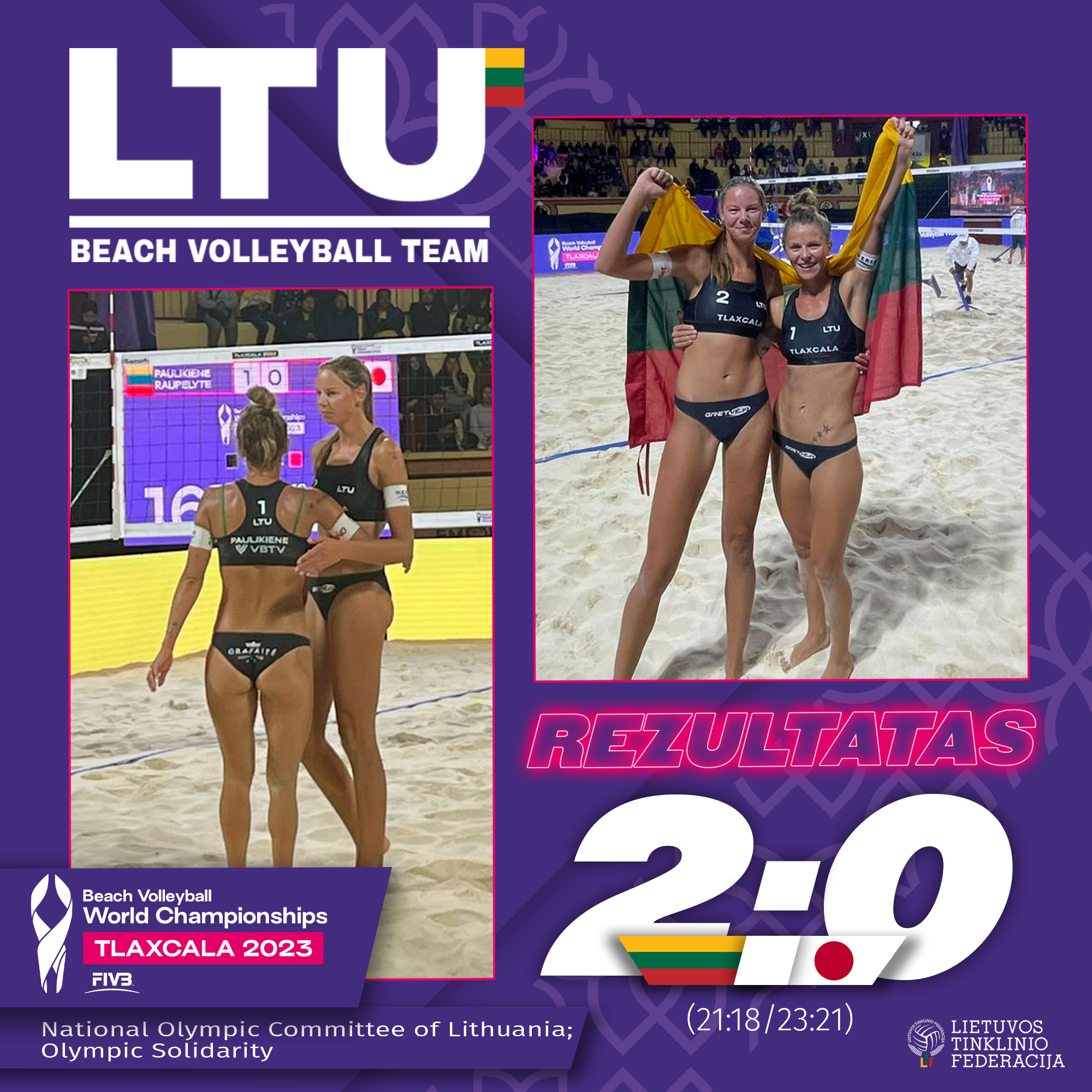 The Lithuanian Volleyball Federation social media posts about the results of the 2023 World Beach Volleyball Championship in Mexico, Tlaxcala. The strongest women’s beach volleyball team, Monika Paulikienė and Ainė Raupelytė played in the competition. The championship in Mexico had a distinct design, and it was decided to align the communication of the competition results with the event’s color scheme.